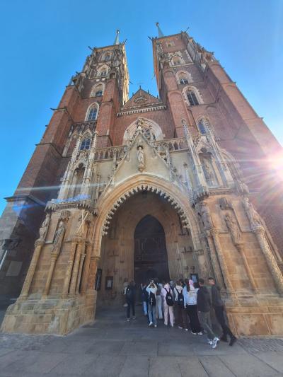 Dzień pierwszy rozpoczęliśmy od spaceru po wrocławskiej Starówce z przewodnikiem. Podczas wędrówki poznaliśmy najważniejsze zabytki miasta – m.in. Ratusz, Pręgierz, pomnik Aleksandra Fredry, Plac Solny oraz urocze kamieniczki Jaś i Małgosia. Po drodze spotkaliśmy również wiele wrocławskich krasnali, których liczba stale rośnie! Nie zabrakło wizyty na Ostrowie Tumskim, czyli w najstarszej części Wrocławia, gdzie podziwialiśmy gotycką Archikatedrę św. Jana Chrzciciela oraz Most Tumski, znany z tradycji zawieszania kłódek przez zakochanych.