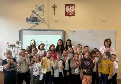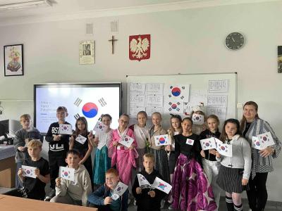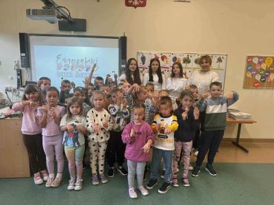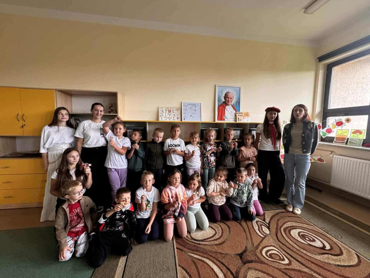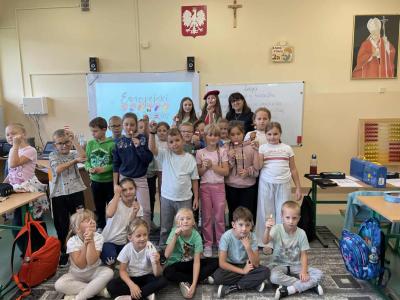 W ramach Dnia Języków Obcych członkowie Samorządu Uczniowskiego odwiedzili wszystkie klasy od 0 do 3. Młodsze dzieci miały okazję uczestniczyć w prezentacjach multimedialnych, które przeniosły je w wirtualną podróż po innych krajach. Każde dziecko otrzymało w prezencie małą flagę, która symbolizowała jeden z prezentowanych krajów.