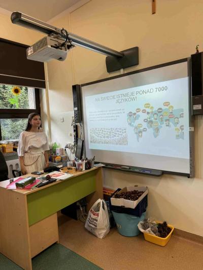 Z tej okazji Samorząd Uczniowski zorganizował wyjątkowe lekcje dla najmłodszych. Uczniowie z klas 0-3 wzięli udział w prezentacjach, które przybliżyły im różnorodność języków i kultur z różnych zakątków świata.