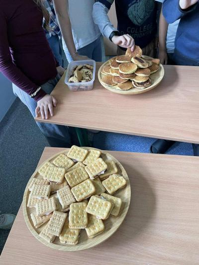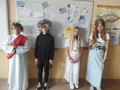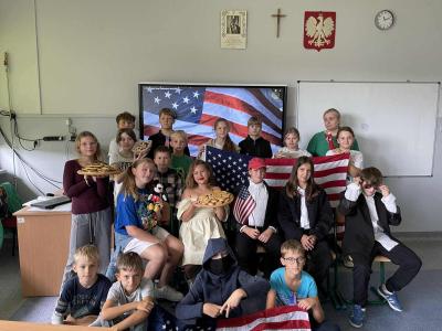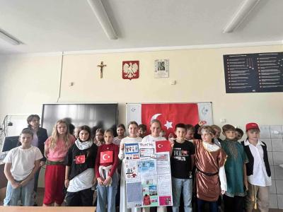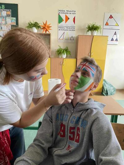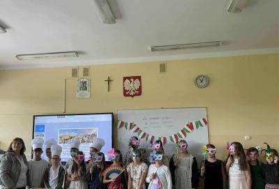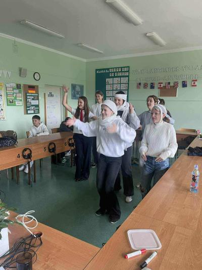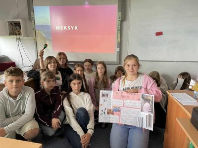 Starsze klasy wzięły udział w wyjątkowym projekcie. Każda klasa miała za zadanie wylosować jeden kraj i przygotować prezentację lub inną aktywność. Uczniowie z wielkim zapałem podeszli do zadania, zamieniając swoje klasy w małe ambasady kultury. To, co zobaczyliśmy, przerosło nasze najśmielsze oczekiwania! Klasy prezentowały nie tylko fakty i ciekawostki o wylosowanych krajach. Przygotowały multimedialne prezentacje, uczyły podstawowych zwrotów, częstowały tradycyjnymi potrawami, a nawet ubierały się w charakterystyczne stroje.