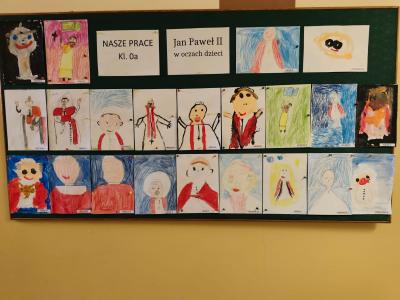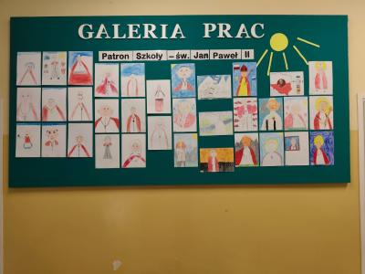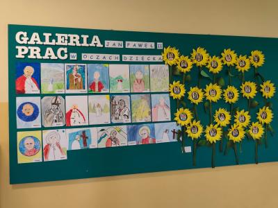 i malunki ukazują sceny z życia Papieża, jego pielgrzymki oraz symbole pokoju i miłości. Wystawa stała się pięknym wyrazem dziecięcego szacunku i przywiązania do Patrona Szkoły, a także przypomnieniem jego nauki i wartości, które pozostawił kolejnym pokoleniom.