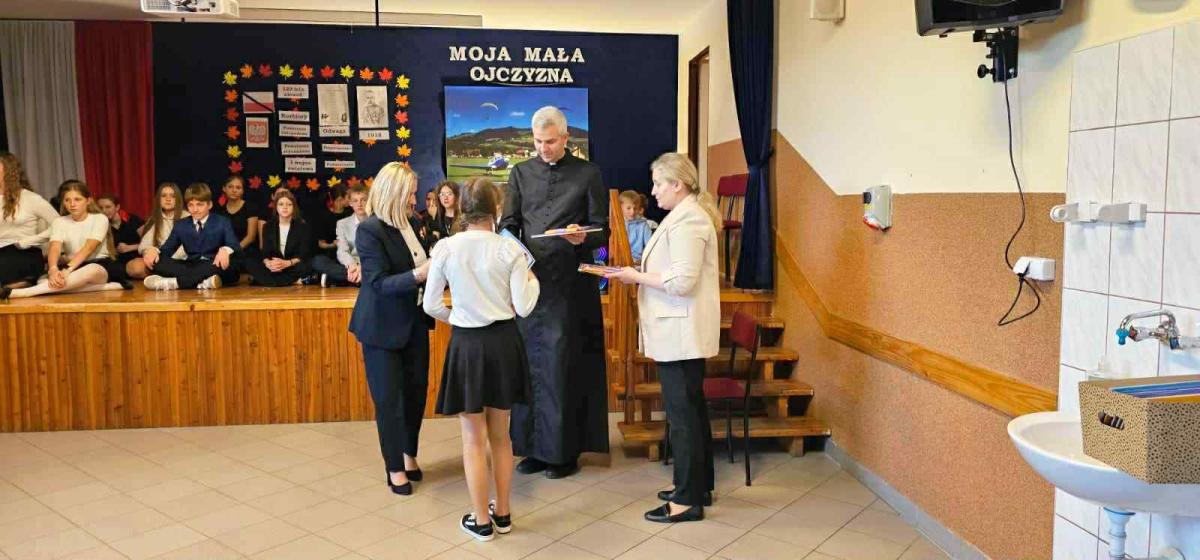 Uczniowie zostali nagrodzeni pamiątkowymi dyplomami oraz upominkami ufundowanymi przez parafię w Łososinie Dolnej.