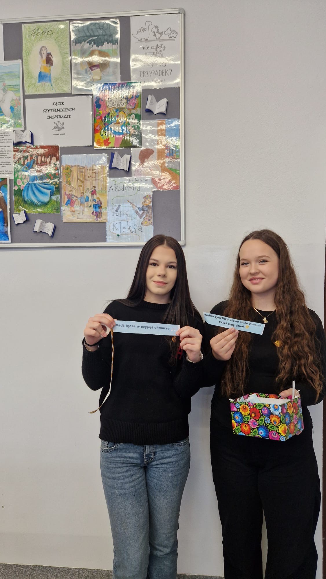 Podczas samego Dnia Życzliwości po szkolnych korytarzach krążyły także karteczki z miłymi słowami. Trafiały one do rąk uczniów i nauczycieli, wywołując uśmiech, wzruszenie i radość. Atmosfera była niezwykle ciepła – pełna życzliwości, wzajemnego wsparcia i pozytywnej energii.