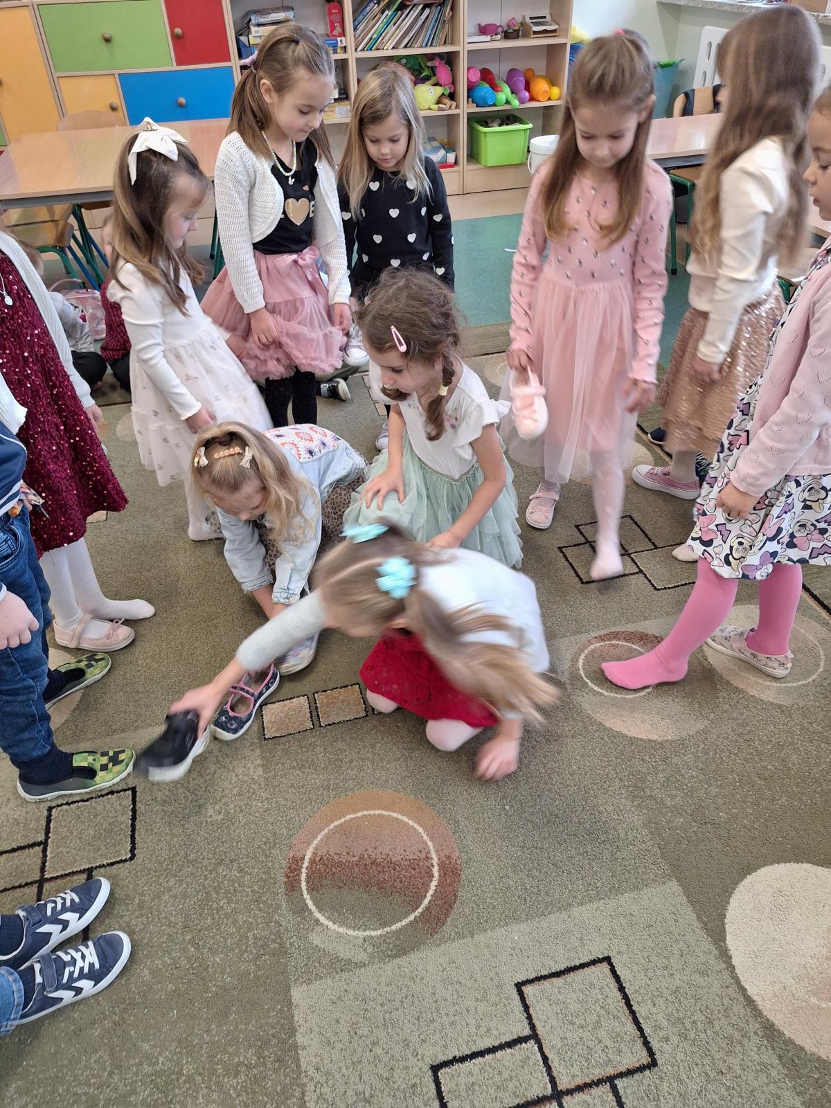 Tegoroczne andrzejki składały się z dwóch części. Pierwszą z nich były wróżby przygotowane i przeprowadzone przez wychowawców w salach lekcyjnych. Uczniowie z zaciekawieniem odkrywali co – według dawnych zwyczajów – może czekać ich w przyszłości. Panowała atmosfera radosnego napięcia, która szybko przeradzała się w śmiech i spontaniczne reakcje dzieci.