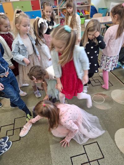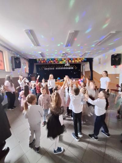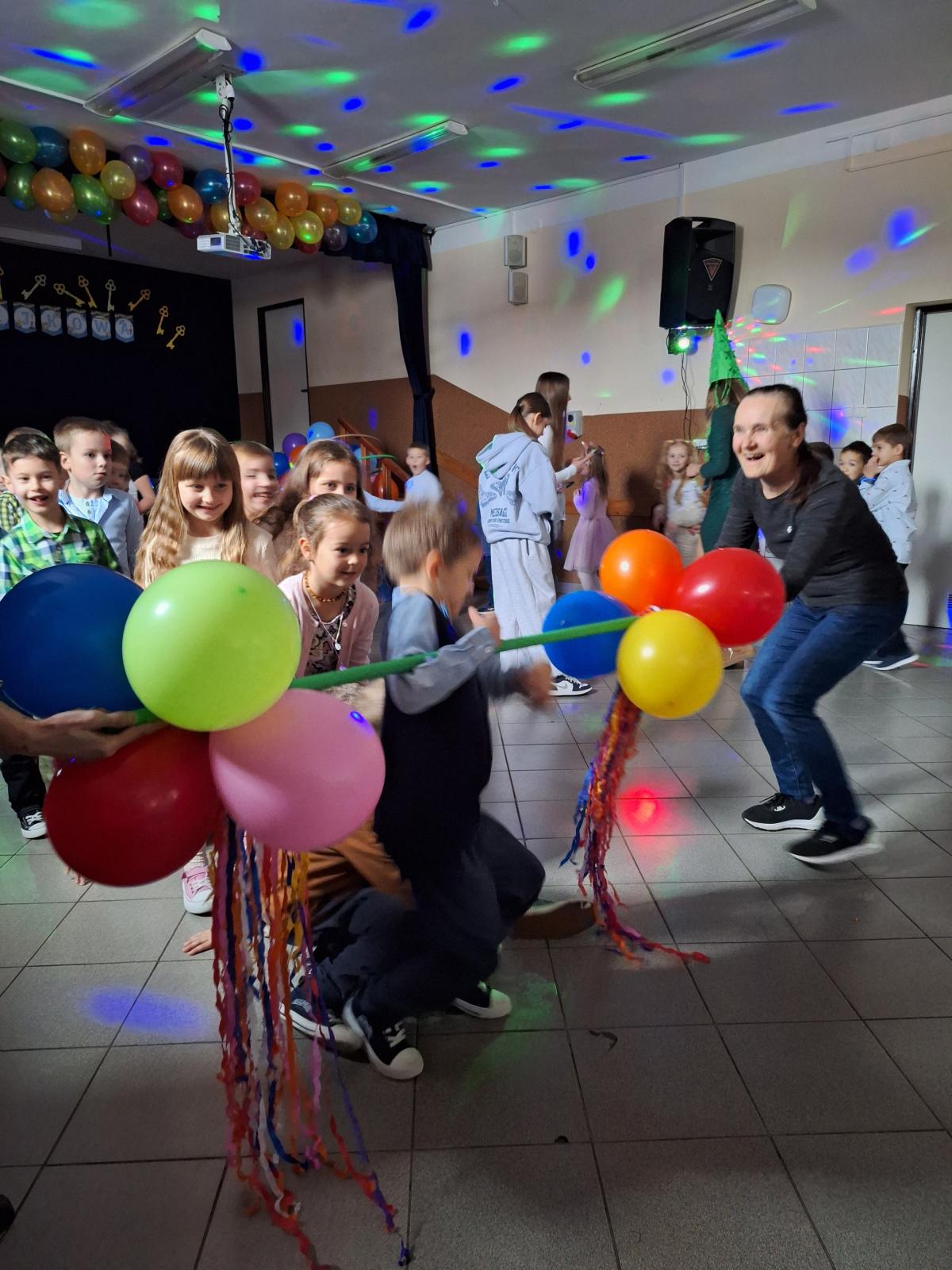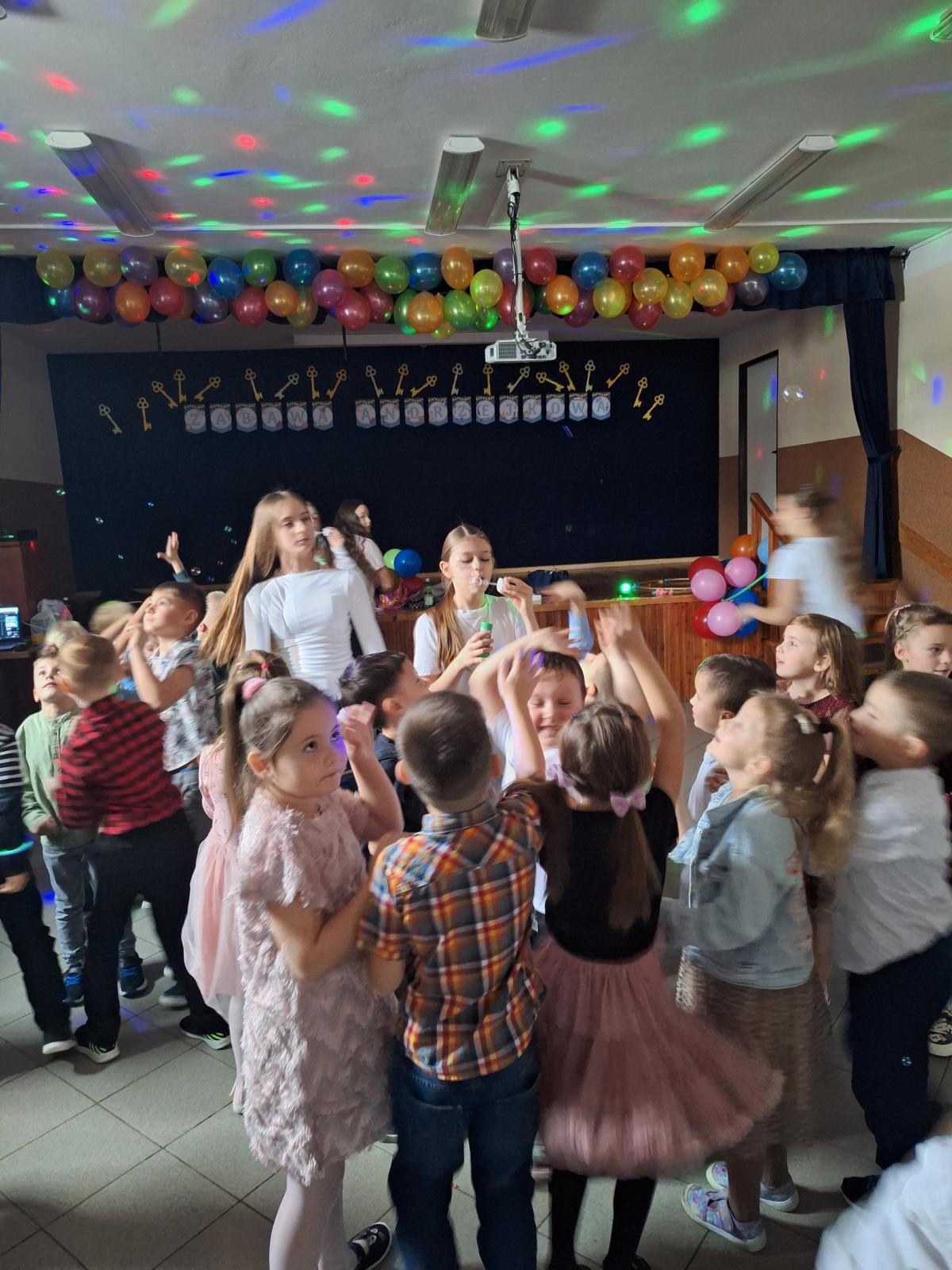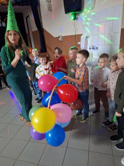 Natomiast drugą częścią imprezy była wspólna zabawa taneczna w sali świetlicy, którą wspaniale przygotowała i przeprowadziła pani Katarzyna Grzybowska, nauczyciel wychowania fizycznego, która tego dnia wcieliła się w tajemniczą ,,zieloną wróżkę”. Jej energia i pomysłowość sprawiły, że dzieci chętnie uczestniczyły w tańcach i zabawach, w których również nie zabrakło motywu przepowiadania przyszłości. O świetną muzykę zadbali przedstawiciele Samorządu Uczniowskiego.