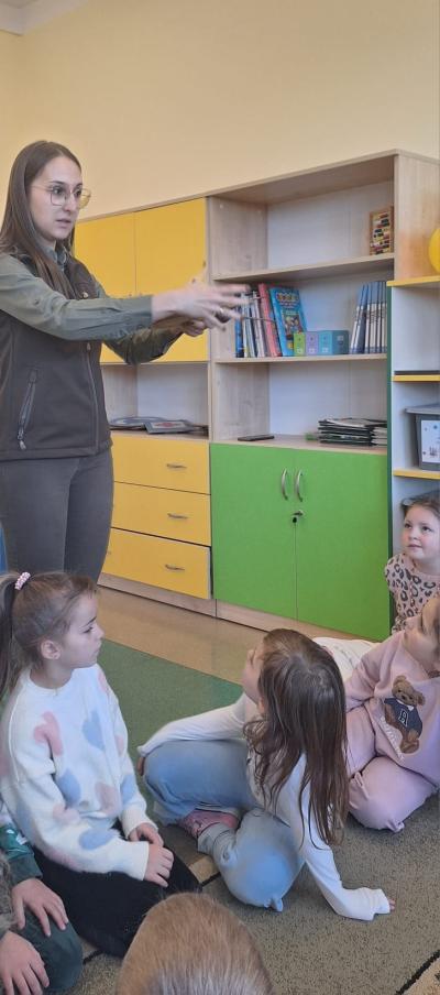 W klasach 0 – III odbyło się spotkanie z Panią Leśnik, która w ciekawy i przystępny sposób opowiadała uczniom o swojej pracy oraz życiu lasu. Dzieci poznały zwierzęta zamieszkujące okoliczne lasy, dowiedziały się, jak dbać o przyrodę i dlaczego ochrona środowiska jest tak ważna. Uczniowie dowiedzieli się także na czym polega codzienna praca leśnika — od ochrony drzew i zwierząt po pielęgnację lasu i jego zasobów.