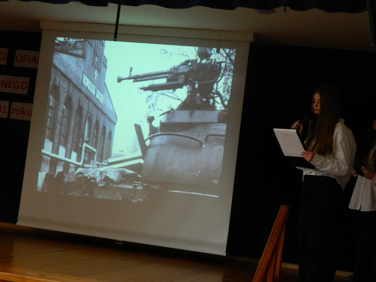 Stan wojenny w Polsce, to ograniczenia praw obywatelskich wprowadzone w nocy z 12 na 13 grudnia 1981r. w celu zachowywania aktywności społeczeństwa dążącego do gruntownej reformy ustroju społeczno-politycznego PRL. Potwierdzony dekretem Rady Państwa niezgodnym z konstytucją zabraniającą wydawania dekretów w czasie trwania sejmu.  Stan wojenny ograniczył  wolność ludzi! Ta noc zmieniła wszystko. Zamilkły telefony, na ulice wyjechały czołgi i wozy pancerne, do mieszkań działaczy „Solidarności” załomotała milicja. Aresztowano wielu z nich. Od 22.00 do 6.00 rano zaczęła obowiązywać godzina milicyjna, kiedy to bez zezwolenia nie wolno było opuszczać domów. Zaroiło się od patroli. Zakazano podróży krajowych i zagranicznych.