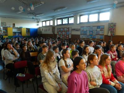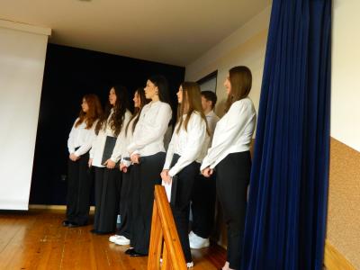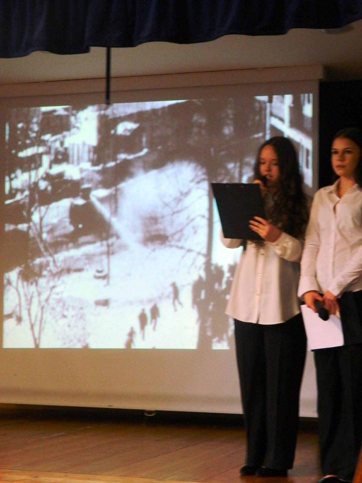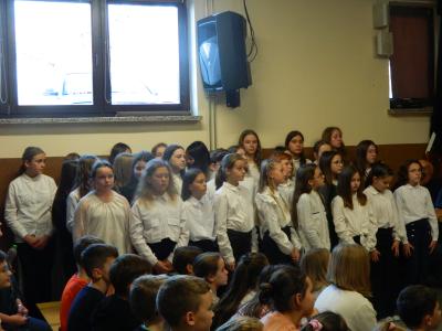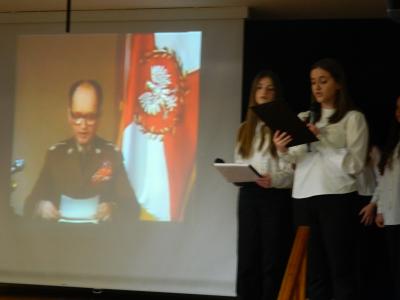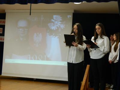Uroczysty apel poświęcony ofiarom stanu wojennego przygotowali: Zbigniew Rusnak i Małgorzata Wygoda wraz z chórem szkolnym