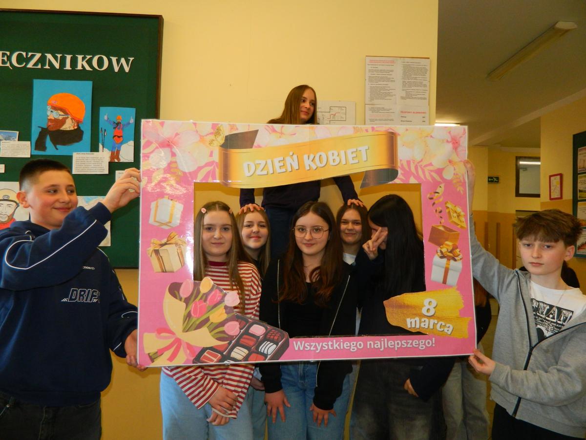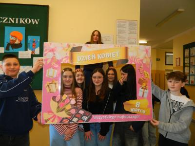 Z okazji Dnia Kobiet przedstawiciele Samorządu Uczniowskiego przygotowali dla społeczności szkolnej niespodziankę. Aby upamiętnić to marcowe święto i zachować radosną atmosferę, zorganizowano okolicznościową sesję zdjęciową.