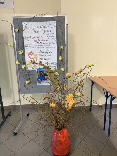 Kształtując postawy przejawiające się wrażliwością na los drugiego człowieka i chęcią niesienia pomocy zarząd SK PCK naszej szkoły wraz z opiekunami przeprowadził  w dniach: 25-26.03.2026 roku  Wielkanocną Akcję Charytatywną.