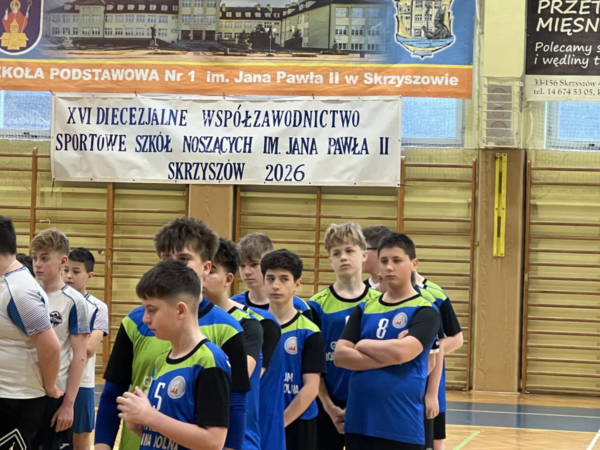 Dnia 31 marca 2026 r. w Skrzyszowie odbył się turniej szkół noszących imię Jana Pawła II w piłce ręcznej chłopców. Uczniowie którzy reprezentowali naszą szkołę w kategorii klas VII-VIII: Studziński Patryk, Jarosz Oliwier, Maciaś Adrian, Ogorzałek Arkadiusz, Ciastoń Karol, Karpiel Bartosz, Karpiel Krystian, Maciaś Karol, Pajor Bartosz, Zelek Jan, Drewko Miłosz, Kulig Sebastian, Chełmecki Szymon, Pociecha Maksymilian, Górowski Filip zdobyli IV miejsce.