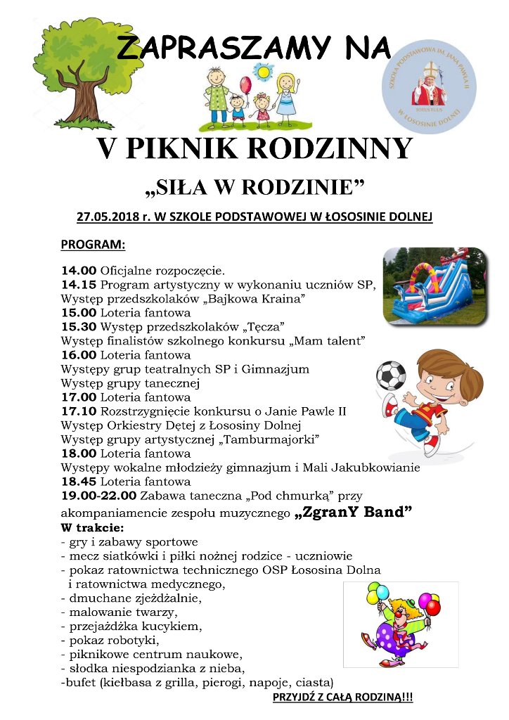 Aktualności Treść ROZSTRZYGNIĘCIE KONKURSU O PATRONIE NASZEJ SZKOŁY - ŚWIĘTYM JANIE PAWLE II 16.06.2018 22:41 GMINNY KONKURS EKOLOGICZNY "ZIEMIA NASZ DOM" 16.06.2018 22:16 ETAP SZKOLNY KONKURSU EKOLOGICZNEGO 16.06.2018 22:13 GRILL KLASOWY VIA i OGNISKO VIB 16.06.2018 22:10 PRZEGLĄD FOLKLORU SĄDECCZYZNY 04.06.2018 8:50 Konkurs plastyczny "Współczesny mały i duży" 03.06.2018 21:19 Gminny Przegląd Teatrzyków Dziecięcych "Wiosna 2018" -Żbikowice 03.06.2018 13:45 V PIKNIK RODZINNY 28.05.2018 22:38 "SIŁA W RODZINIE" PIERWSZA POMOC 28.05.2018 21:20 Szkolny koncert „LEKCJA ŻYWEJ MUZYKI” 27.05.2018 22:08 List Minister Edukacji Narodowej do rodziców 21.05.2018 9:09 Mamy podium na XII Gminnym konkursie Języka Angielskiego 18.05.2018 8:12 KLASY PIERWSZE W ZATORZE 17.05.2018 22:14 DZIEŃ INTEGRACJI POLSKO - WĘGIERSKO- WŁOSKI 15.05.2018 20:49 V PIKNIK RODZINNY 09.05.2018 9:35